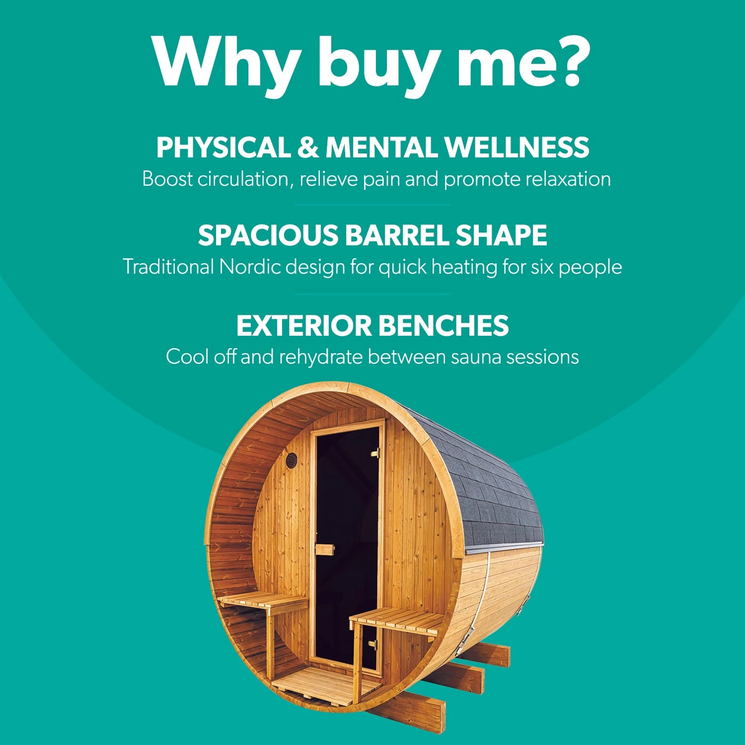 TraditionalĀ barrel designĀ provides structural integrity and minimal maintenance, with the curved build naturally shedding water and snow.Ā Roof shingles act as protective shieldsĀ from the elements, ensuring lower energy bills and a potential bump in your property’sĀ value.Ā Barrel saunas also provide an extra layer of efficiency, less power is needed to heat the room due to minimal unused airspace, while the thick staves are excellent insulators.
