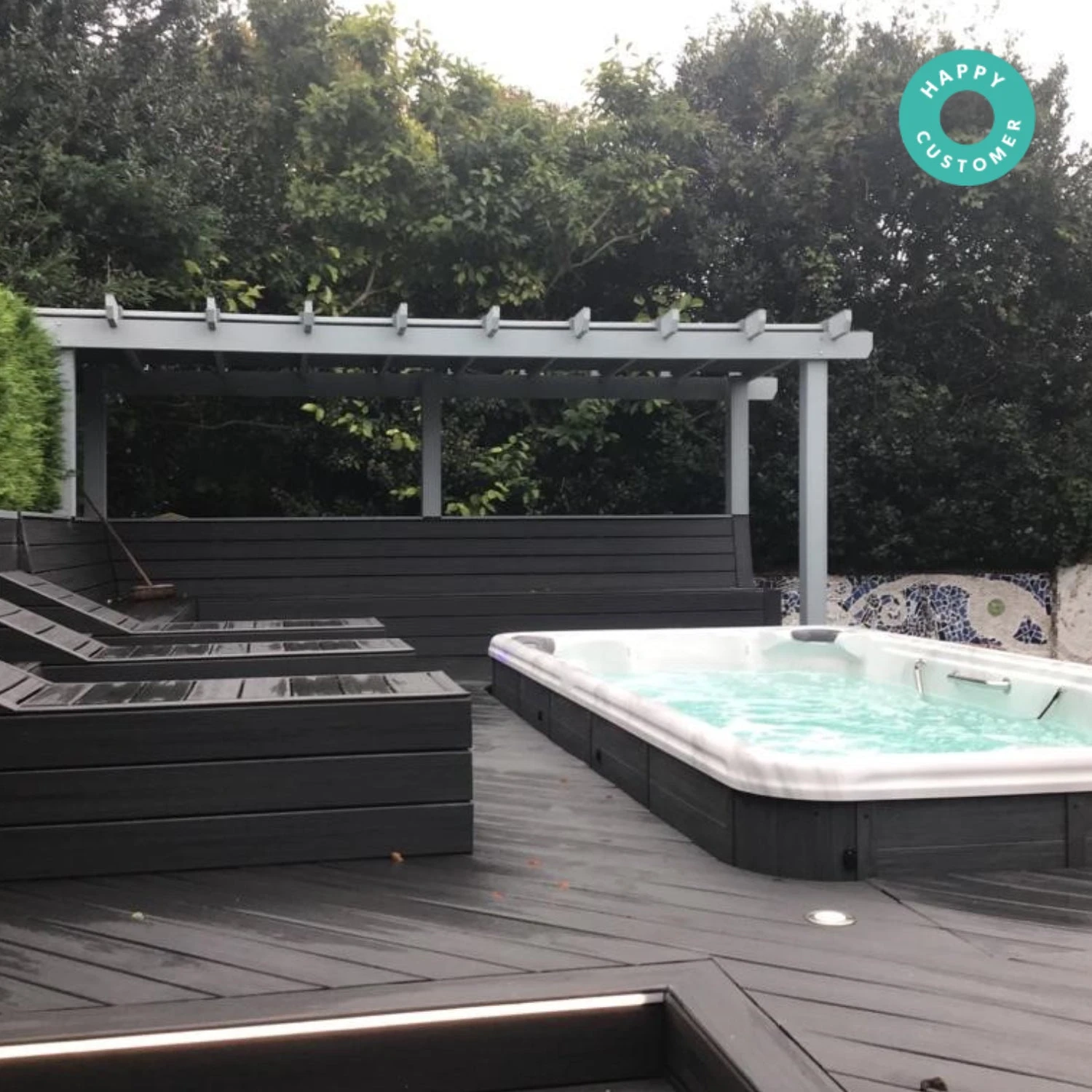 The hydrotherapy system features 28 strong jets positioned within three contoured seats to target various muscle groups. Using water and heat to soothe aches and pain and to aid mental health, you’re left feeling relaxed, revitalised, and de-stressed. The controls enable you to turn on your swim jets and adjust your hydrotherapy experience at the touch of a button.